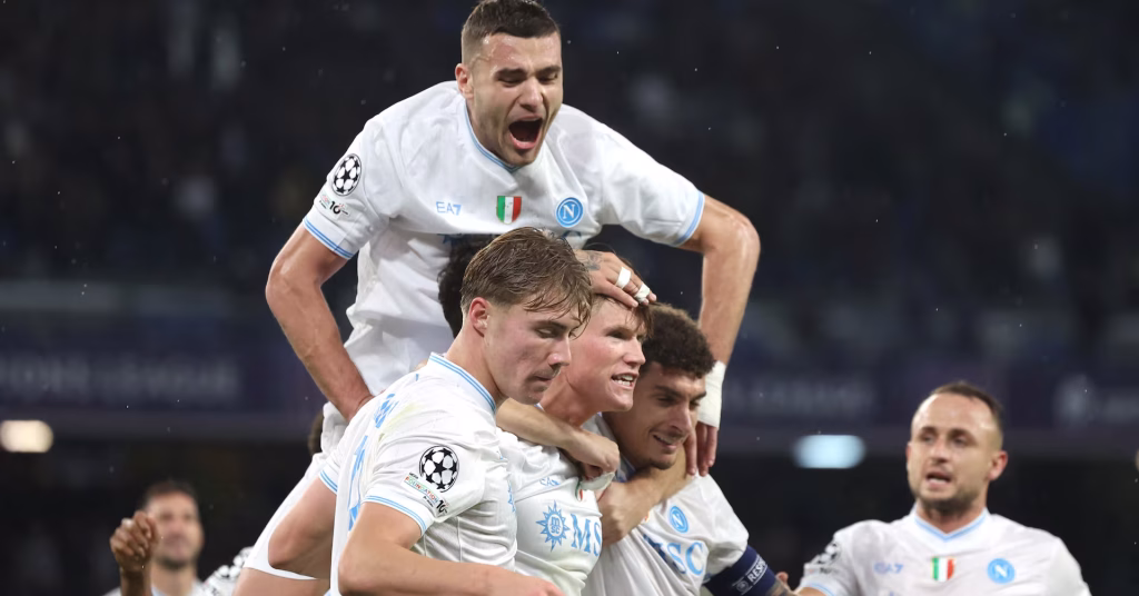 شهد اللقاء ضغطًا قويًا من قره باغ منذ البداية، حيث كاد لاعبهم إيمانويل أداي أن يسجل هدفًا مبكرًا، ولكن نابولي تمكن من فرض سيطرته تدريجيًا رغم صعوبة اختراق دفاع الفريق الضيف. استمر التعادل السلبي حتى بداية الشوط الثاني، حيث تمكن نابولي من تعزيز أدائه والهجوم المكثف، ونجح في تسجيل هدفه الأول عبر مكتوميناي الذي كان في وضع مثالي لاستقبال الكرة وتحويلها للشباك.