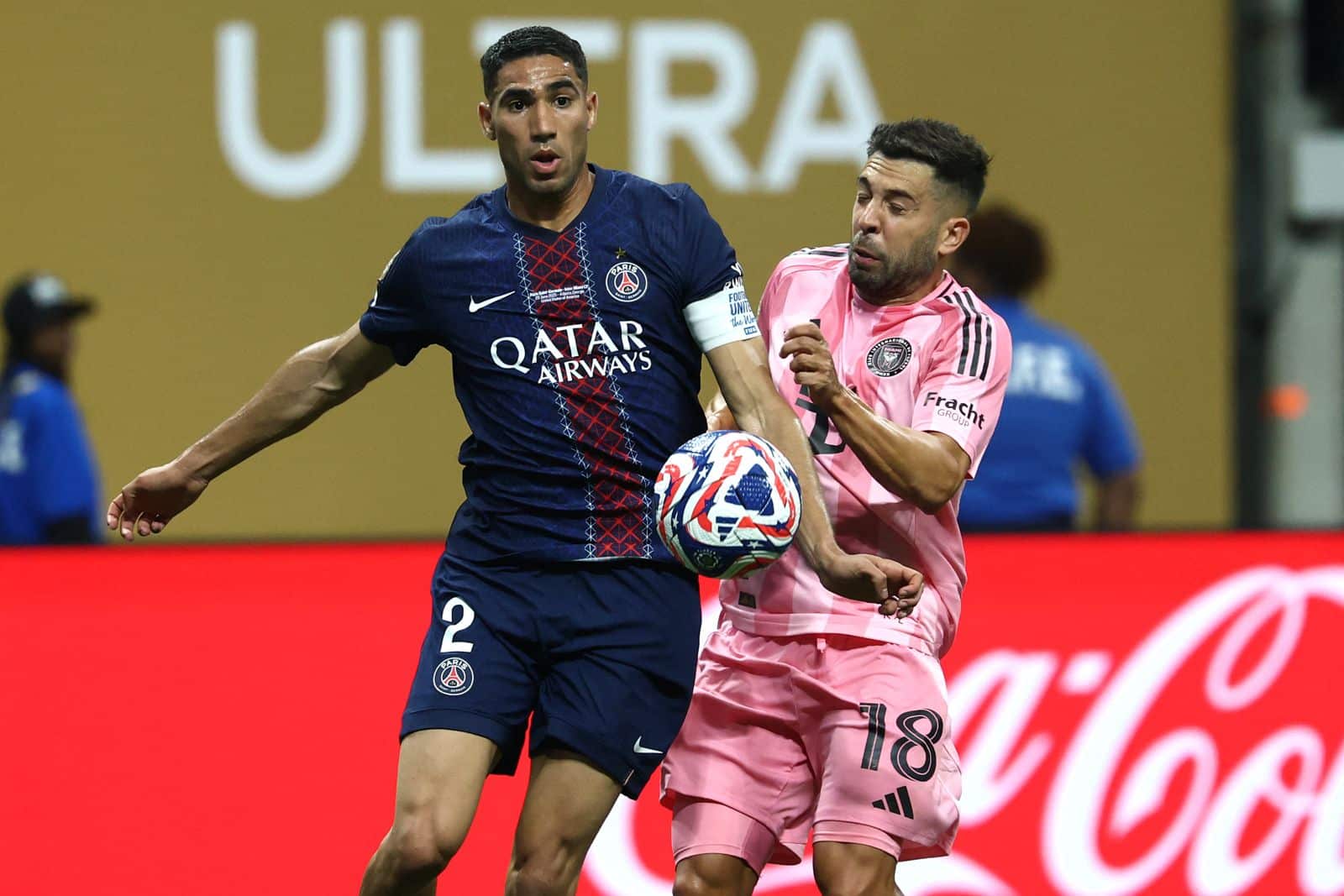 اكتسح نادي باريس سان جيرمان الفرنسي، بطل دوري أبطال أوروبا، فريق إنتر ميامي الأميركي برباعية نظيفة، في مباراة دور الـ16 من بطولة كأس العالم للأندية، التي أقيمت مساء الأحد على ملعب مرسيدس بنز ستاديوم في مدينة أتلانتا الأميركية، وقدم الفريق الباريسي أداءً قويًا منذ بداية اللقاء، حيث حسم النتيجة مبكرًا في الشوط الأول بأربعة أهداف كاملة، تناوب على تسجيلها لاعب الوسط البرتغالي جواو نيفيش في الدقيقتين 6 و39، والمدافع الأرجنتيني توماس بهدف عكسي في مرماه بالدقيقة 45، ثم أضاف المغربي أشرف حكيمي الهدف الرابع في الوقت بدل الضائع (45+3)، المواجهة كانت خاصة بوجود النجم الأرجنتيني ليونيل ميسي الذي قاد فريقه إنتر ميامي ضد فريقه السابق باريس سان جيرمان، لكن حضوره لم يمنع الهزيمة القاسية.