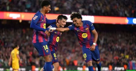 حقق فريق برشلونة فوزًا كبيرًا على غريمه إسبانيول بنتيجة 4-1، في المباراة التي جمعتهما مساء اليوم على أرضية ملعب سبوتيفاي كامب نو، ضمن منافسات الجولة 31 من الدوري الإسباني لموسم 2025-2026. وافتتح برشلونة التسجيل مبكرًا عن طريق فيران توريس في الدقيقة 10، قبل أن يعود اللاعب نفسه ليضيف الهدف الثاني في الدقيقة 25، مانحًا فريقه … تابع قراءة برشلونة يضرب اسبانيول برباعية ويقترب من حسم الليغا